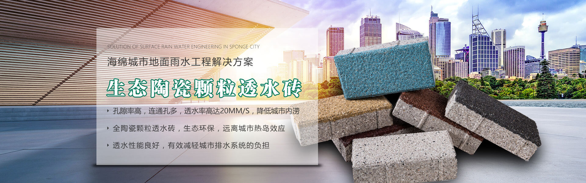 四川銘成永美環(huán)保科技有限公司(www_mcotcn_com.fourwh.cn)是國內(nèi)非常早研究探索海綿城市的企業(yè)之一,公司主導(dǎo)產(chǎn)品:海綿城市鋪路磚家---銘成永美生態(tài)陶瓷透水磚已在全國多個重點(diǎn)項(xiàng)目使用。公司透水混凝土、雨水收集利用系統(tǒng)正在全國推廣。公司將整合海綿城市規(guī)劃設(shè)計、污水處理、污泥利用、環(huán)保設(shè)備、社會資本等海綿城市相關(guān)產(chǎn)業(yè)。為解決城市“熱島效應(yīng)”、地表硬化,防止城市內(nèi)澇,營造高質(zhì)量的自然生態(tài)環(huán)境,改善城市生態(tài)平衡而不斷努力!公司將充分利用現(xiàn)有的互聯(lián)網(wǎng)資訊平臺,整合生態(tài)海綿城市產(chǎn)業(yè)鏈,打造集互聯(lián)網(wǎng)、科研、生產(chǎn)、銷售、規(guī)劃設(shè)計、PPP項(xiàng)目營運(yùn)、工程施工為一體的綜合性環(huán)??萍脊?,已初步建立覆蓋全國的業(yè)務(wù)團(tuán)隊和渠道。